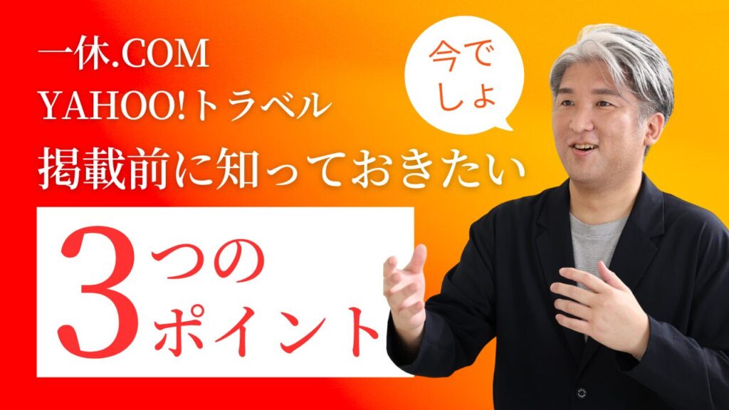 一休は審査制のため、まずはYahoo!トラベルから掲載を始めるのも現実的なステップです。